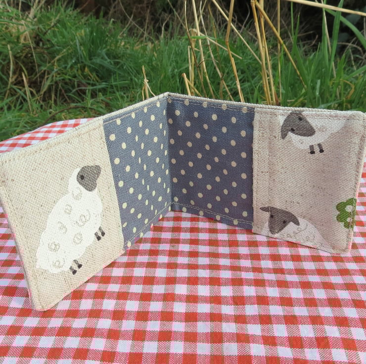 The fabric used is a medium weight cotton, with a whimsical sheep design.