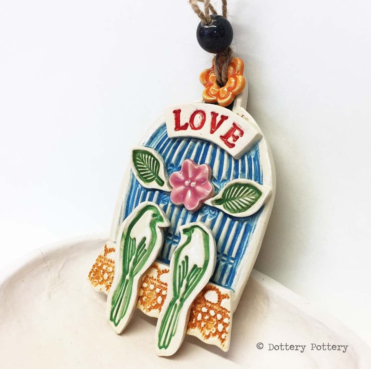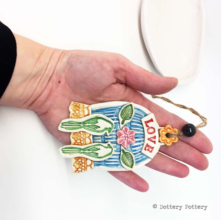 This little wall plaque is made from white earthenware clay and measures 7cm x 10cm x 1.5cm deep.