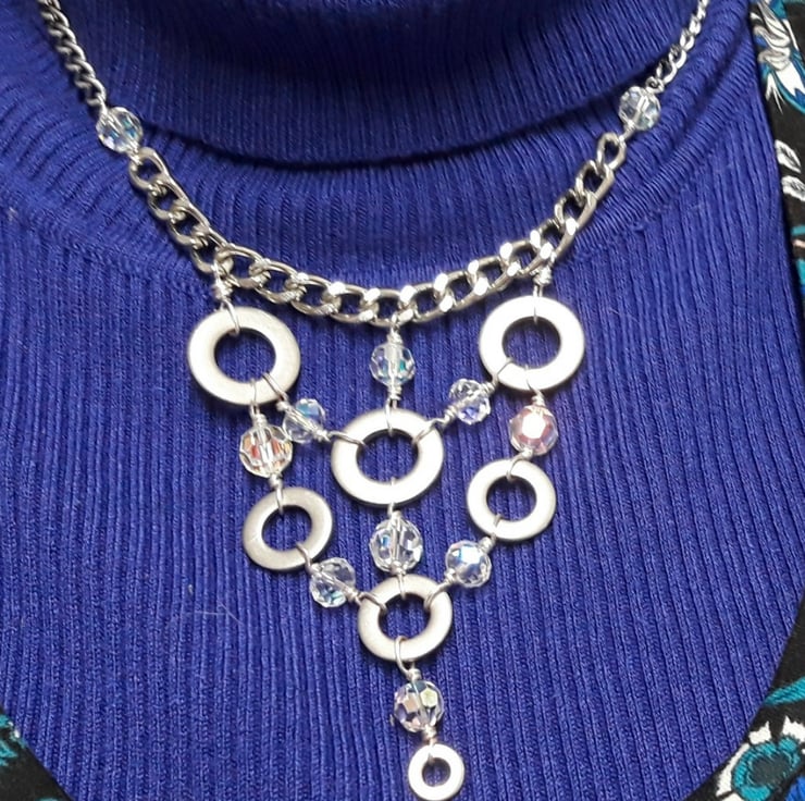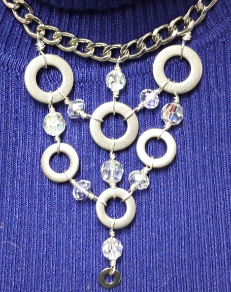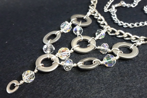 I like the contrast of the crystal beads with the stainless steel washers and think it makes an interesting necklace for someone who likes something a bit different.
