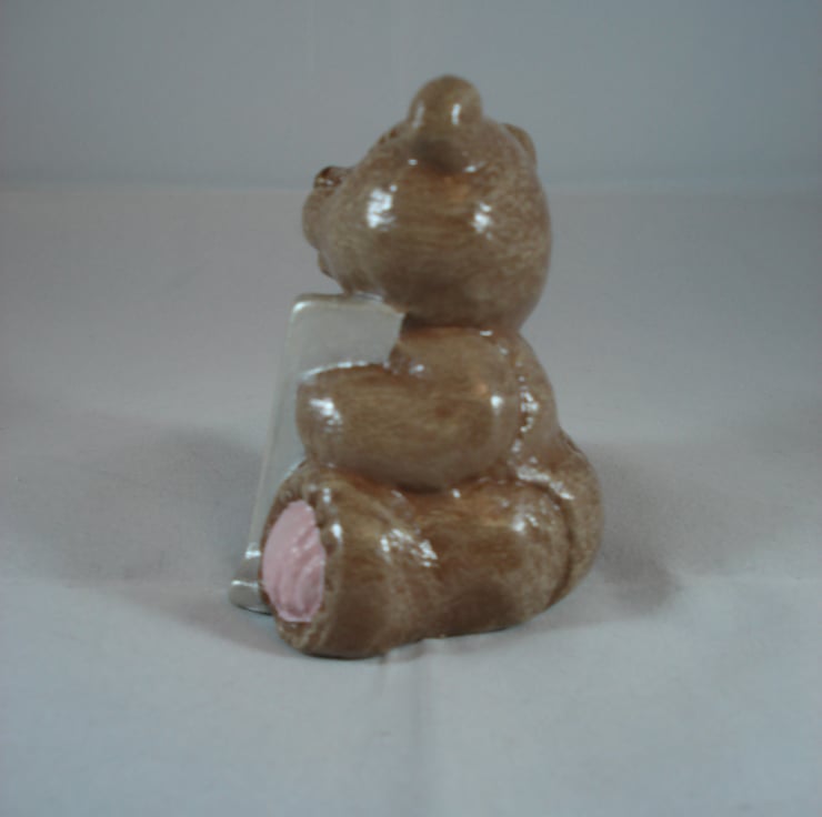 I have for sale a small ceramic animal ornament, which was hand painted by myself. It is a brown bear sitting down and holding a number one. This would make a lovely addition to maybe the top of a Birthday cake, or perhaps given as a gift.