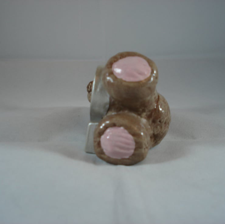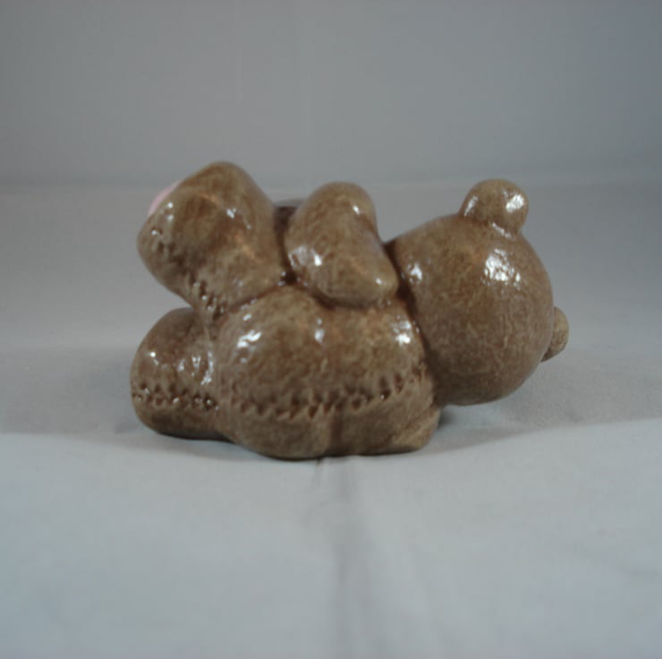 I have for sale a small ceramic animal ornament, which was hand painted by myself. It is a brown bear, lying on its side and holding a two number, between its paws. This would make a lovely Birthday cake topper, or perhaps given as a gift.