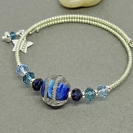Bracelet is strung on Beadalon 49 with wire guardians and finished with a 14kt Gold Filled clasp and extender chain with dangle charm beads.