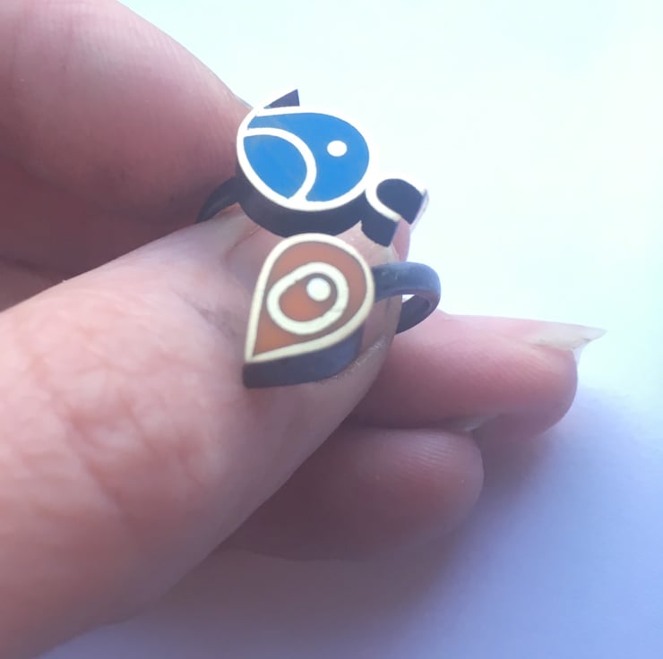 This ring is a UK size R/S and is available now in brass and silver but can be made to your required size and the resin can be your chosen colours.