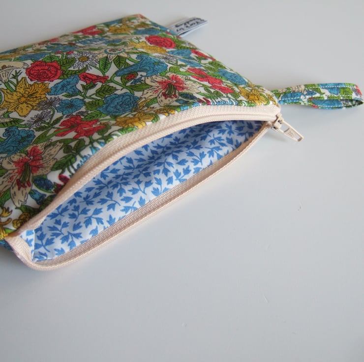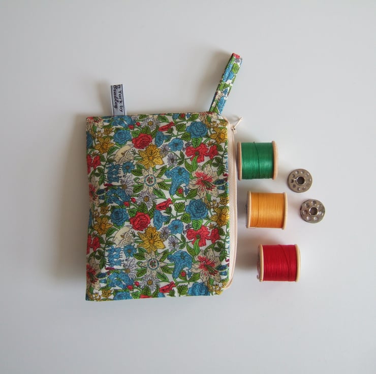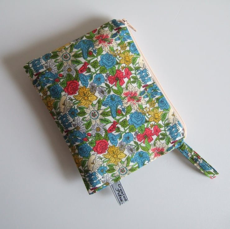 Bright floral Liberty fabric purse, cosmetics bag or headphones storage.