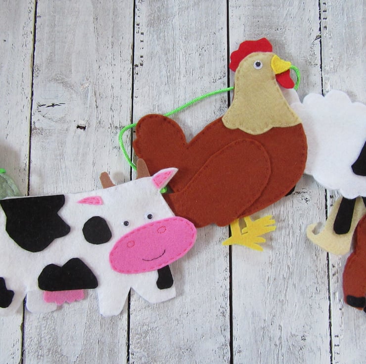 Cute farm animal felt nursery garland.