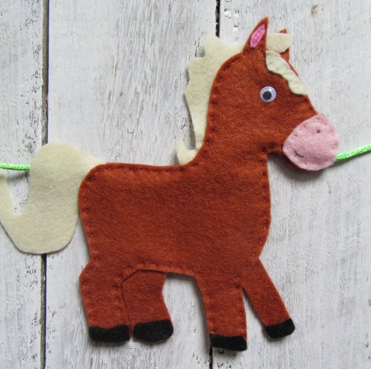 I love making felt garlands to decorate a room, I have previously make British birds and safari animals. Now I have added this cute farm animal garland to the collection.