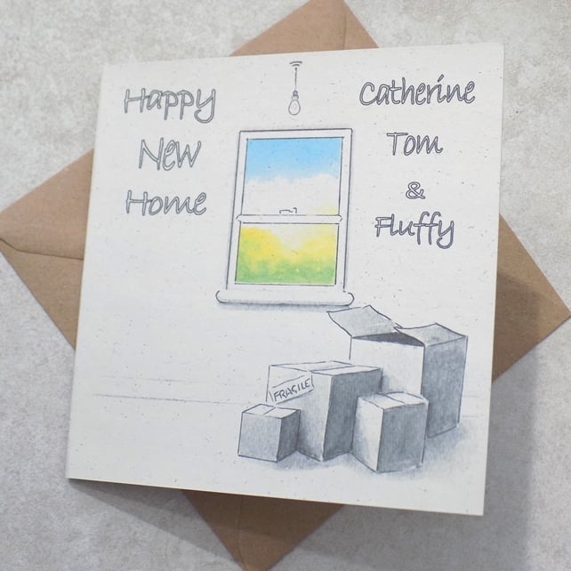 My eco friendly New Home card has been printed using 100% recycled oatmeal finish style 320g.