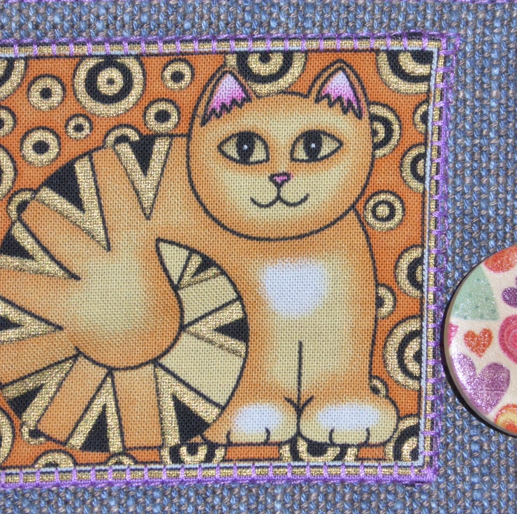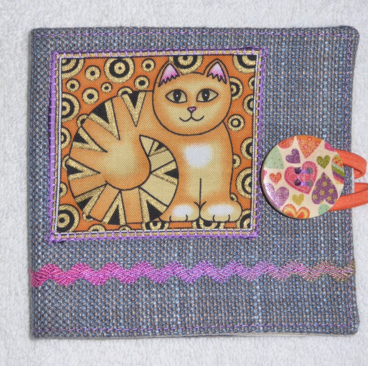 I have created this lovely sewing needle case from an upholstery weight print cotton.It has an applique decorative panel and embellished with braid. The needle case is lined in a plain cream cotton fabric, has interfacing for structure and has a felt insert to keep your needles safe. The case has a printed wooden button and elastic to close, and is top stitched for a professional finish. The needles shown in the picture are included.