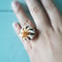 Fimo earrings in the shape of a donut, with a pale yellow icing, brown piped chocolate and a red cherry on the side.