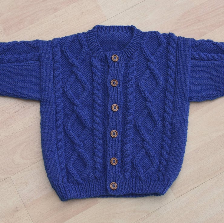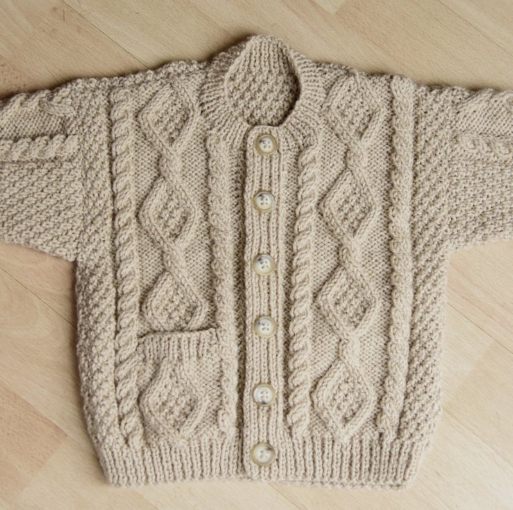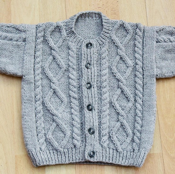 3 hand knitted cardigans in an aran style knitted in 100%% acrylic double knitting yarn