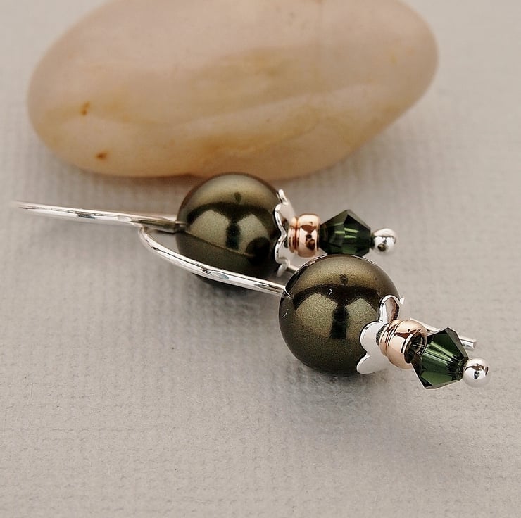 Handmade earrings featuring Dark Green Swarovski glass pearls.