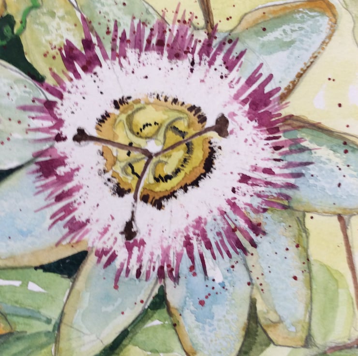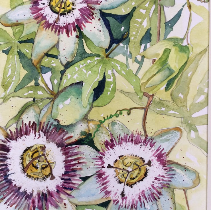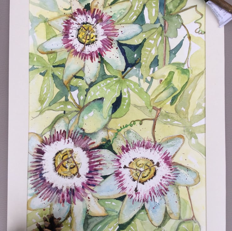 I love drawing inspiration from nature, in particular flowers. I have a passionflower shrub in my garden and always admire its beauty and religious symbolism so wanted to capture its unique qualities in my painting.
