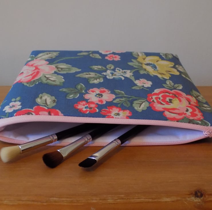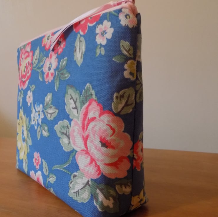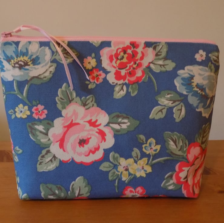 Made with a high quality cotton canvas Cath Kidston fabric, 'Rainbow Rose', it has a waterproof nylon lining, so it can be used either as a toiletries bag or large make up case.