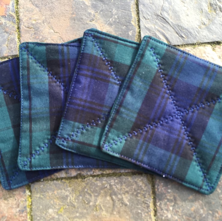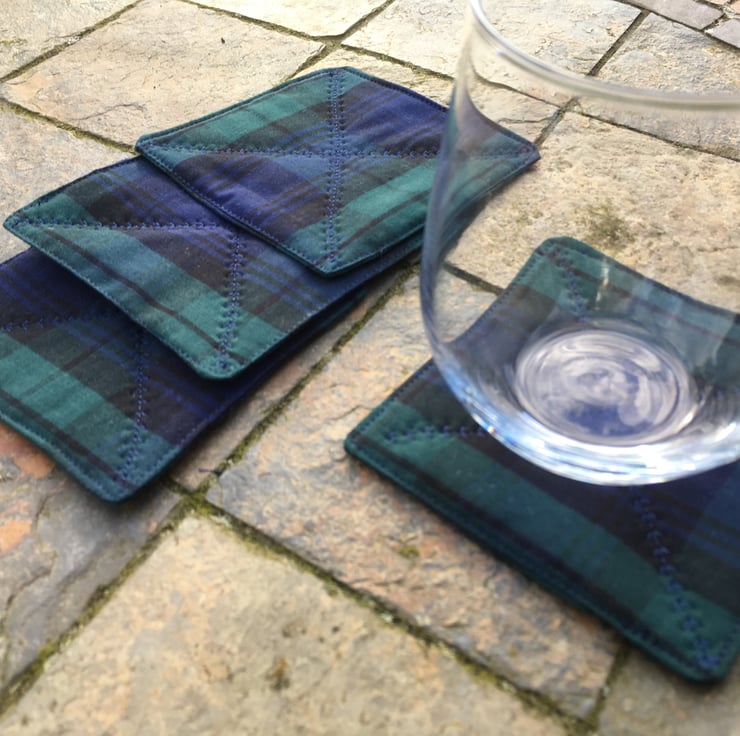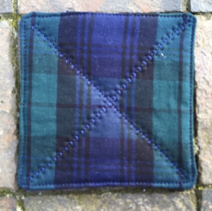 We use coasters all the time in our house and I was getting annoyed with the condensation on the outside of my G and T glass making the coaster "stick" to the bottom of my glass!!! So, decided to make some quilted Christmas coasters that would absorb this small annoyance for ourselves. Ta dah! They are also machine washable!