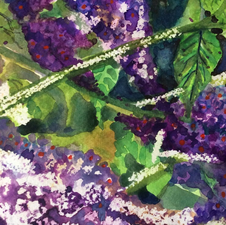 I am always inspired by nature and enjoy painting animals, flowers and landscapes. I wanted to capture the vibrant colour of the buddleia flower and hopefully the painting reminds the viewer of lovely hot summer days!