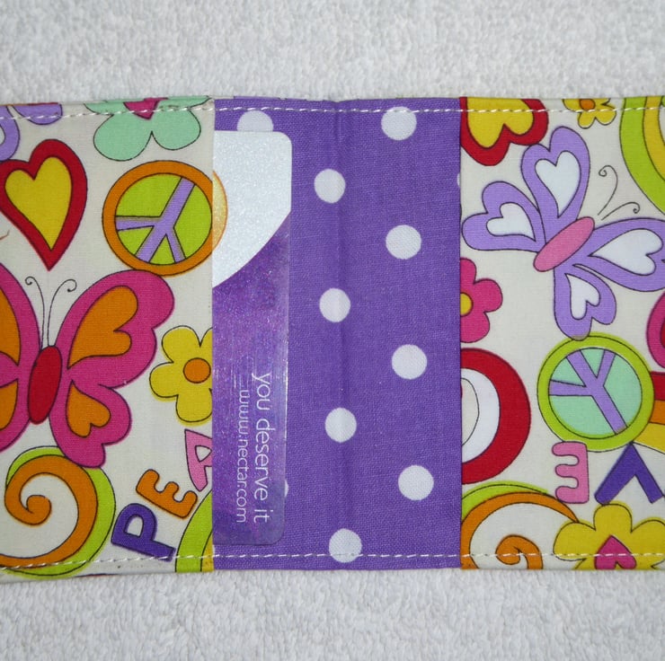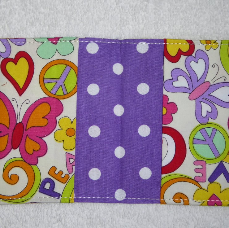 I have designed and created this handy flip card wallet to hold 2 credit cards. The holder is created from cotton fabrics, with interfacing to give structure.There are 2 small interfaced pockets for your cards.