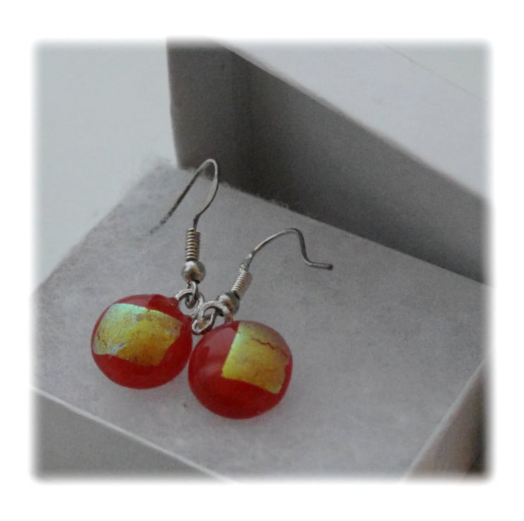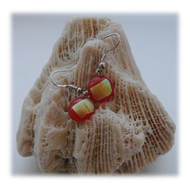 The dichroic glass cabochons for these earrings were handmade, by me, with love.