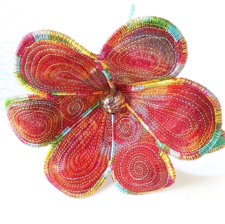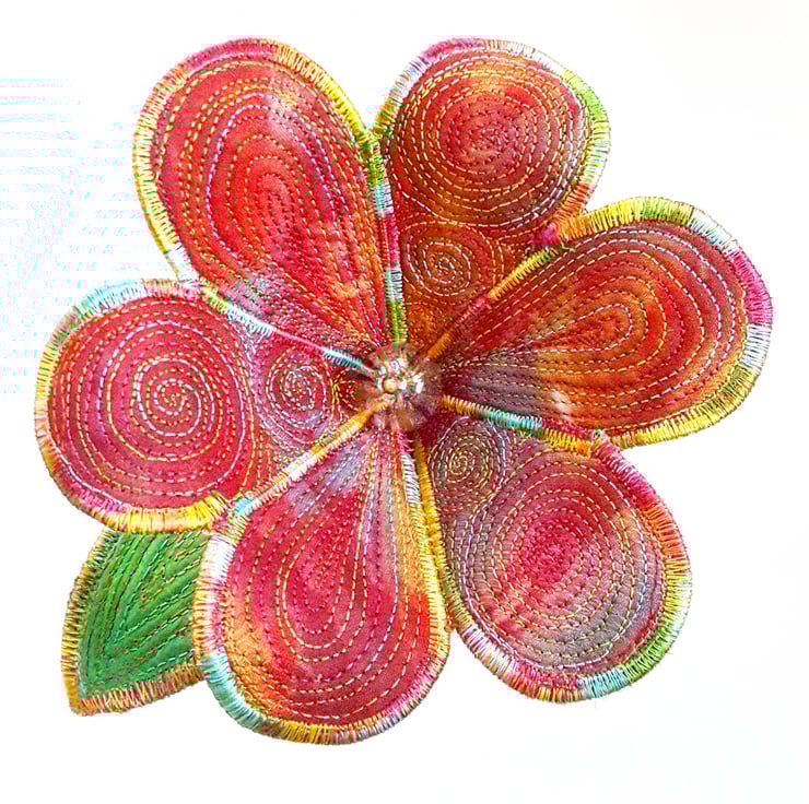 This is a handmade machine stitched textile flower