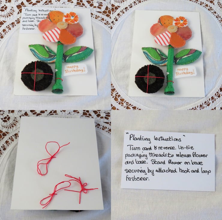 To be posted as a 'Large Letter' the flower will be presented attached to a flat card, wrapped in cellophane, and ready for you to insert into a greeting card and post onwards ('assembly instructions' included) as shown in the final 2 images featuring another flower in this series.
