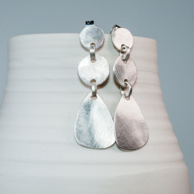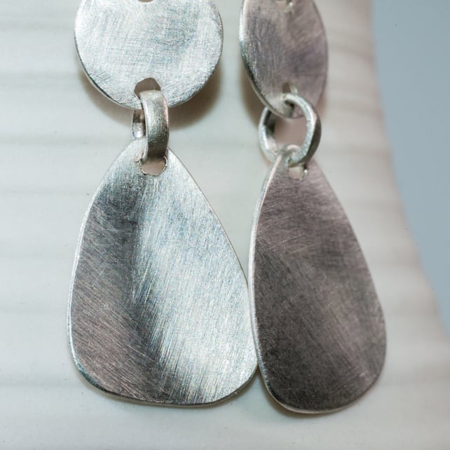 I wanted to make a pair of earrings which move, shimmer and work in different situations... These look good if you're all dressed up or equally good with just jeans. They're delicate yet contemporary. Each link, even the tiny ones, are all handmade - and they move and reflect the light a bit like large juicy sequins but being satin-ised they have that extra special sophisticated touch.
