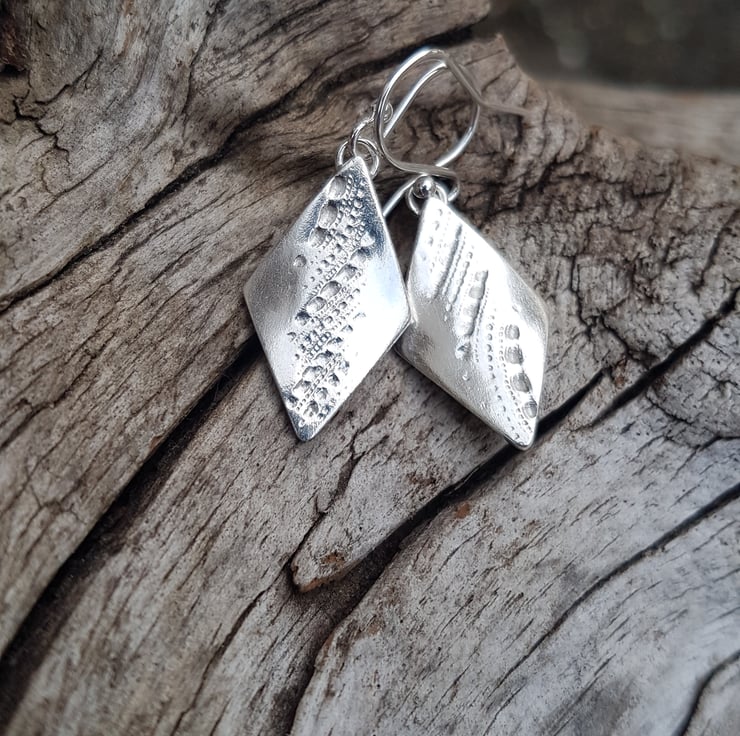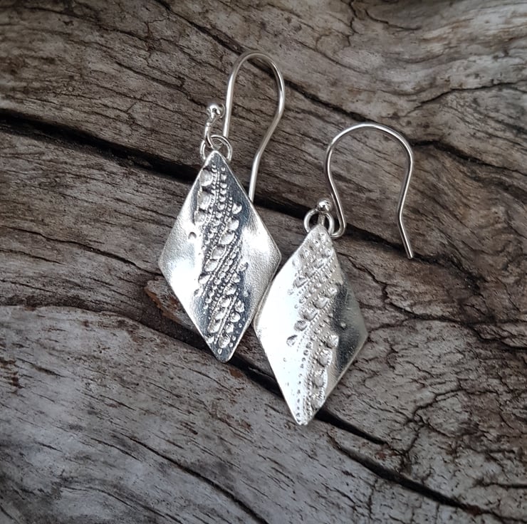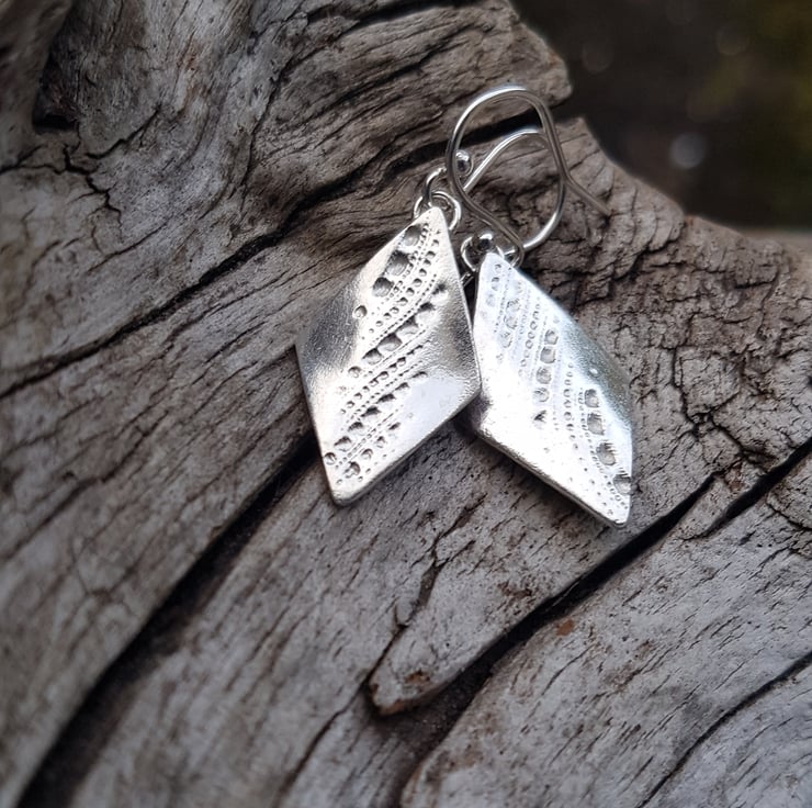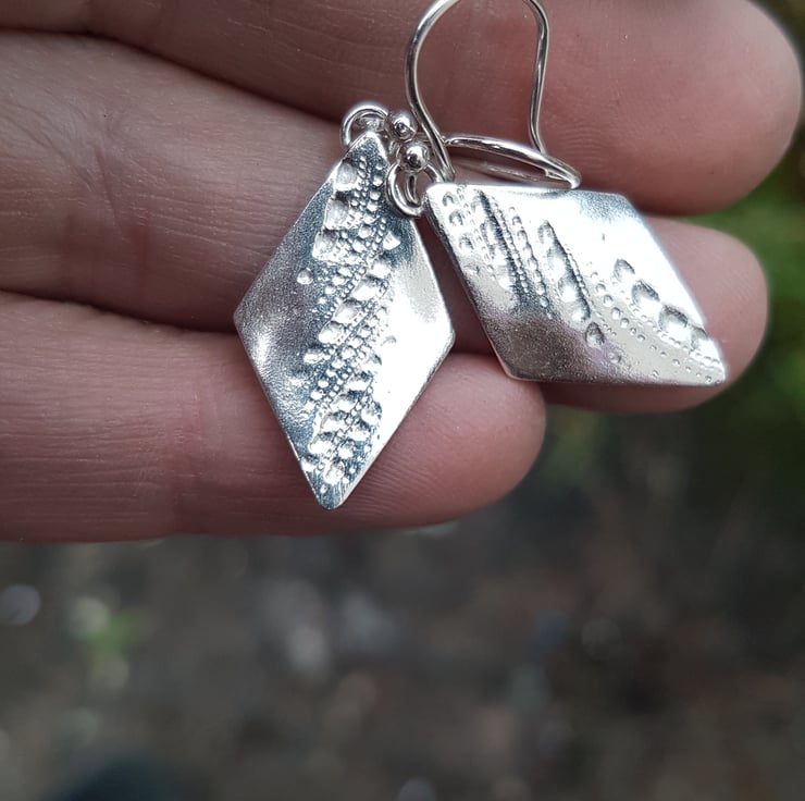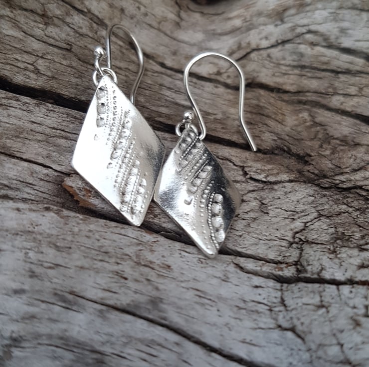 These pretty earring have a texture from a shell found in Cuba, making a wonderfull swirling dotty design.
