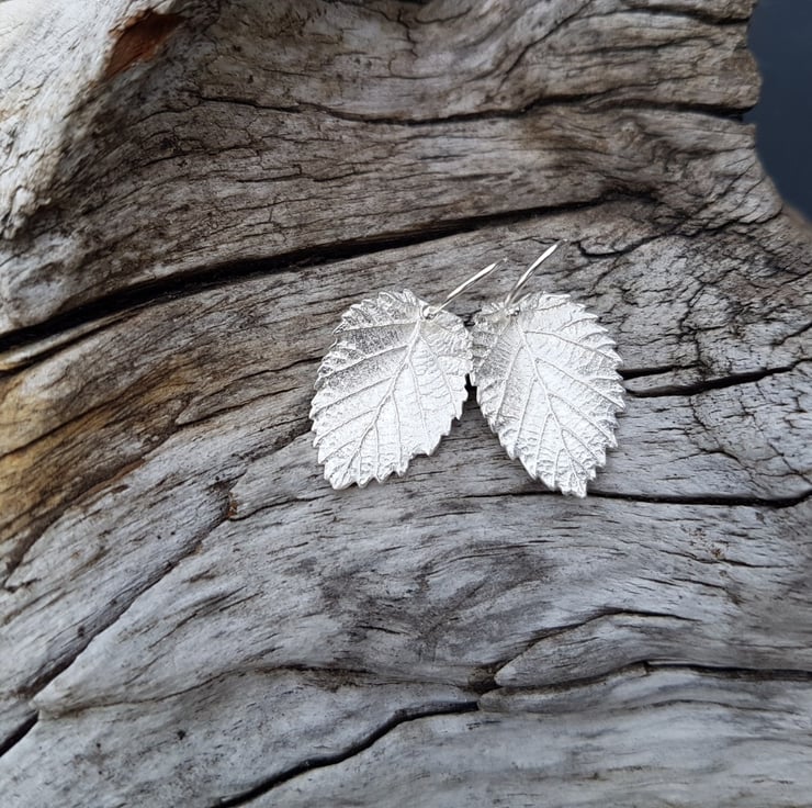 These beautiful Hazel leaves are 999 fine silver and hang from 925 sterling silver ear hooks.