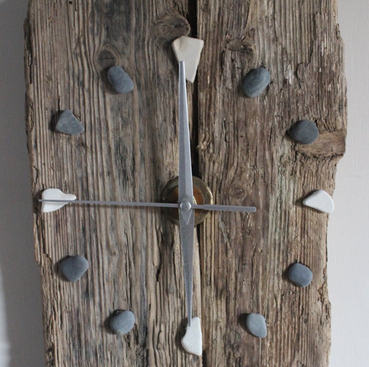 Wall clocks made using different pieces of driftwood, to create a rustic and interesting design. The wood is joined together and the battery powered digital clock mechanism fitted to the rear.