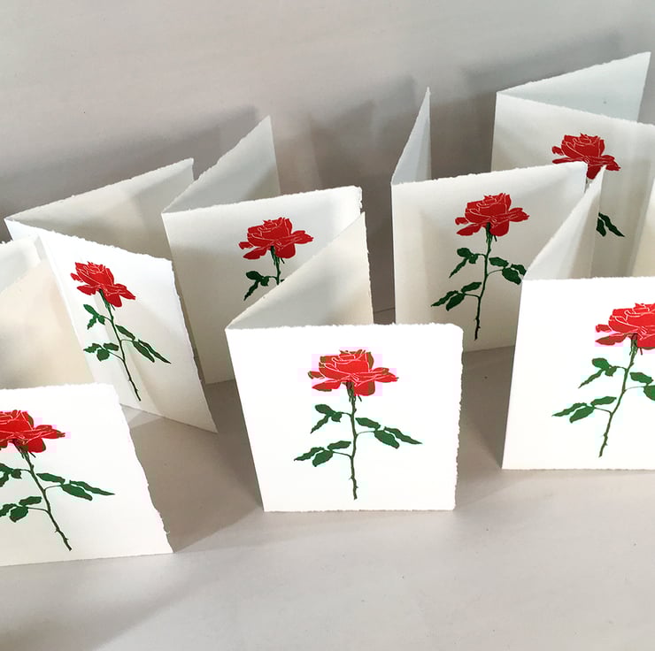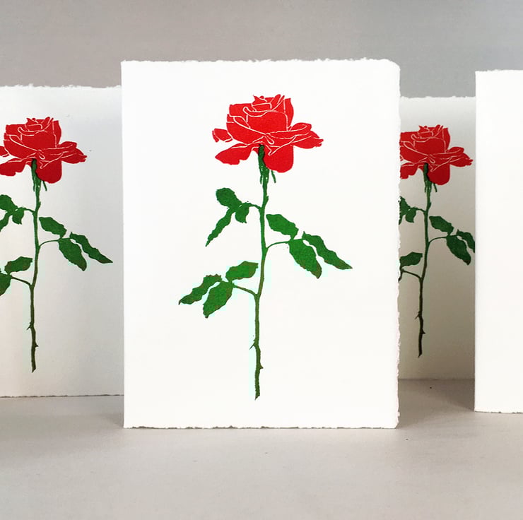 These hand-mixed colours are a Rich Rose-Petal Red & Rose-Stem Green - The photos disguise the soft matt quality of the paper & ink