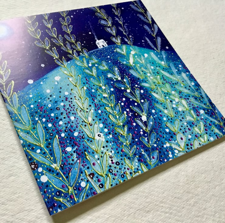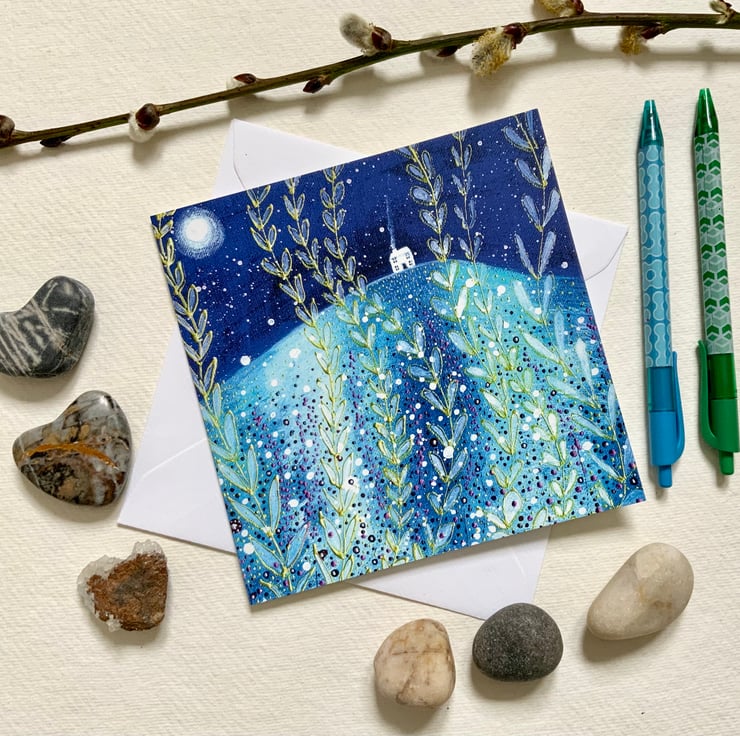 This is a blank greetings card, made from one of my original canvas paintings, it measures 14.5x14.5cm and comes with an envelope and cello cover. It is blank inside making it suitable for a number of occasions.