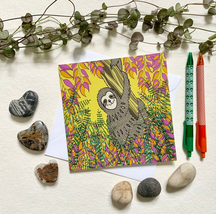 This card has been made from a digital illustration I did. It is blank inside making it suitable for a variety of occasions. It measures 14.5x14.5 cm and comes with an envelope and cello cover for protection.