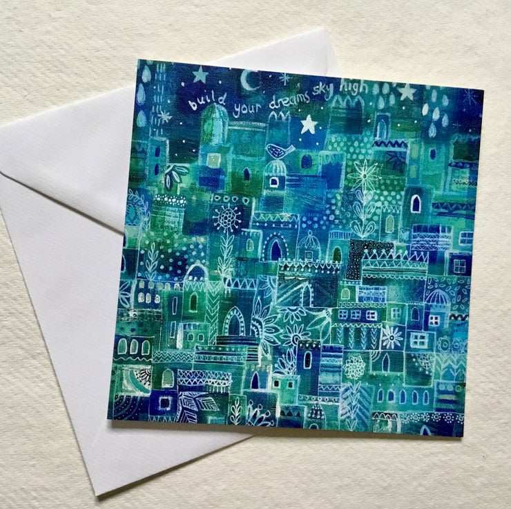 It is a blank card making it suitable for a variety of occasions. It measures 14.5x14.5 cm and comes with an envelope and a cello cover for protection.