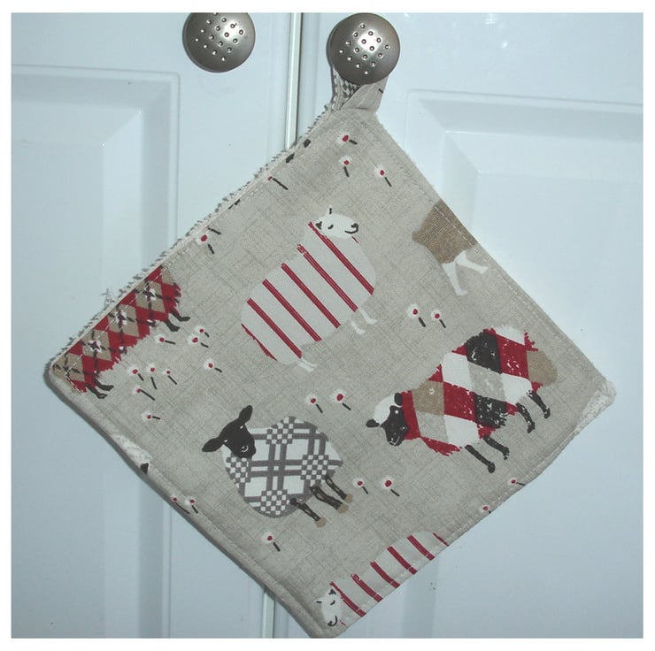 A Pot Holder backed with a cream towel fabric - useful for mopping up around the kitchen.