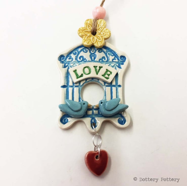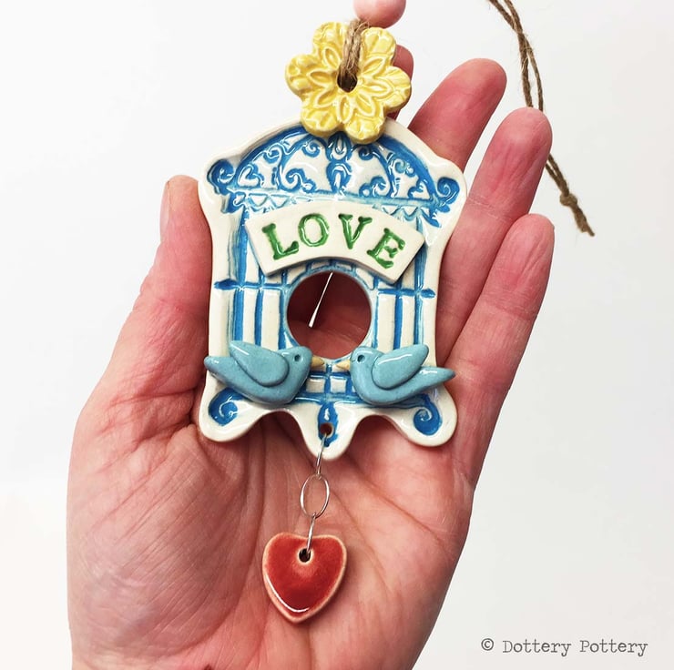 Pottery bird decoration ceramic birdcage Wedding gift Bride and Groom Birdcage