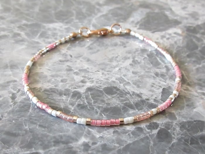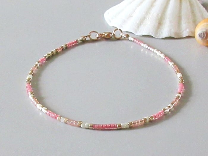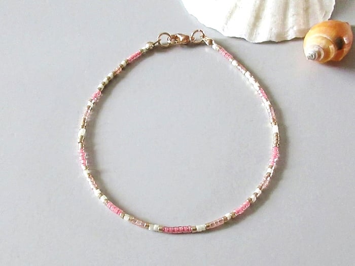For this dainty pink & white friendship bracelet I've used Miyuki Delica seed beads.
