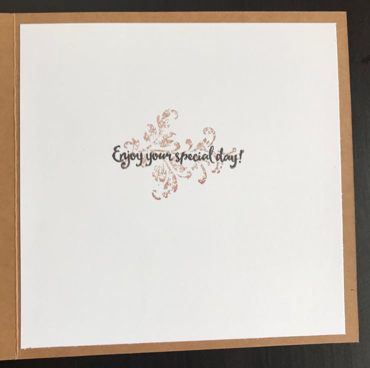 Inside stamped sentiment "Enjoy your special day"