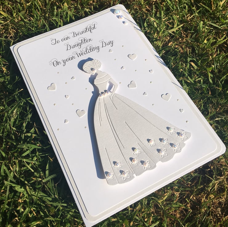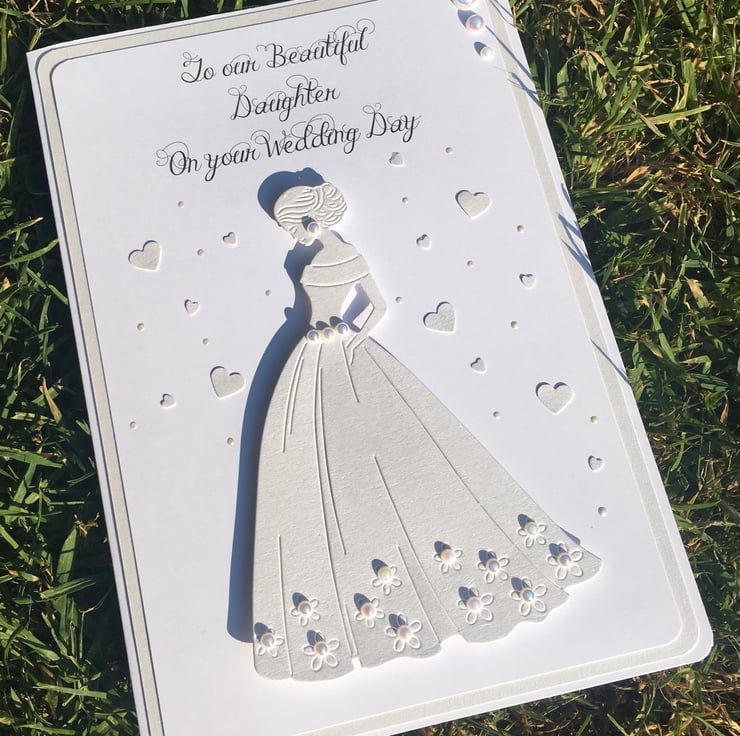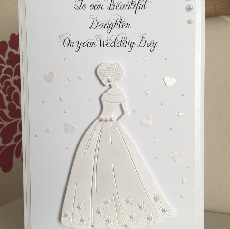 This lovely white and Ivory card, is a unique card to give to your Daughter on her Wedding Day