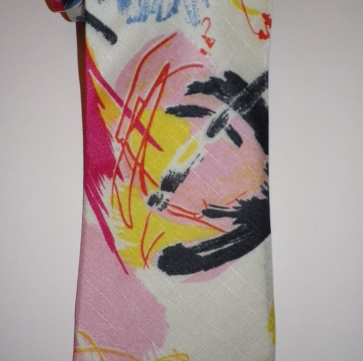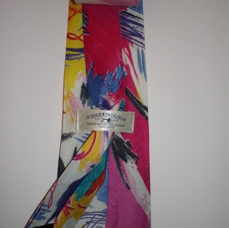 Jackson Pollack inspired abstract art design, mulicoloured silk screen print shantung weave silk tie, limited edition, handmade in England, beautiful gift for that special person or occasion........58" long, 3.5" blade width