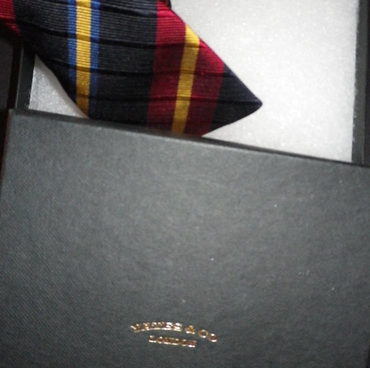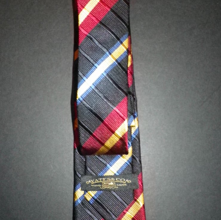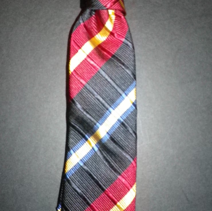 Vintage woven English silk skinny tie ( 2" blade ), rich navy red weave with striking stripe....