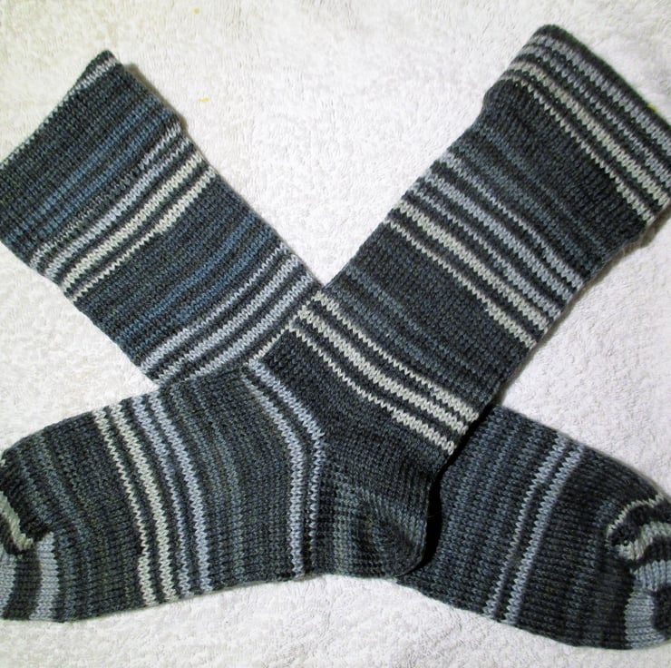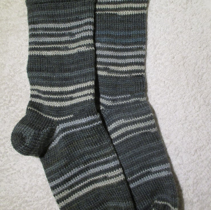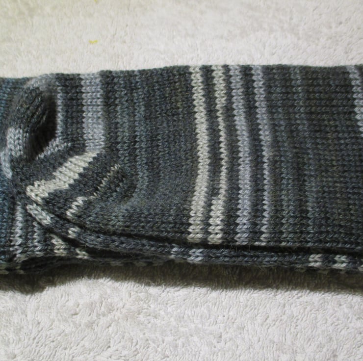 These socks were inspired by the colours and the feel of the yarn, the yarn reminded me of a monochrome, black and white photograph that I have of my Scottish Great Grandparents when they lived in Dublin.