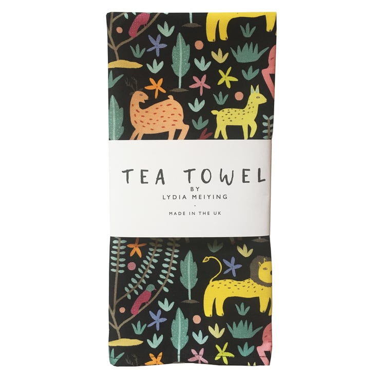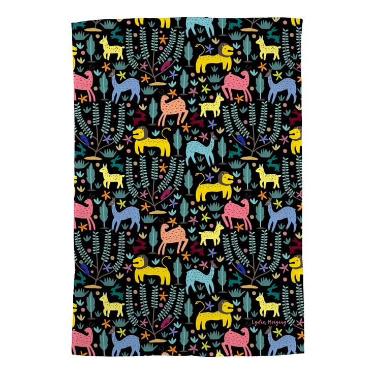 A tea towel featuring a folklore inspired pattern, a perfect addition to any kitchen.