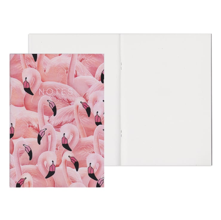A cute notebook for jotting down ideas, shopping lists and plans. The cover features a tropical design of flamingos.
