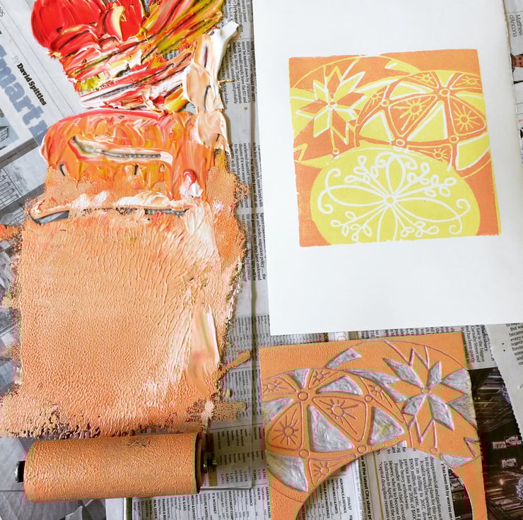 Five square Easter cards featuring Easter eggs from an original colour reduction polyprint