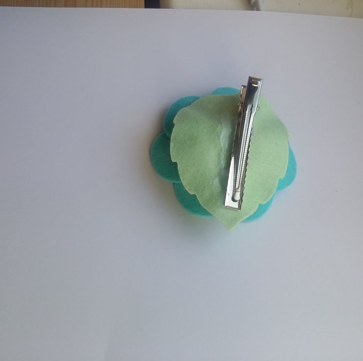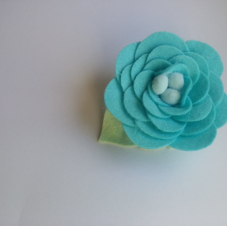 Attached to a crocodile clip, this soft felt flower is lovely with little soft felt balls this could be an idea wedding accessories perhaps when you don't want a a hat.