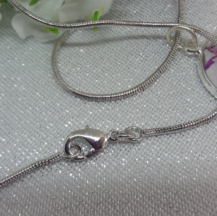 Gorgeous purple butterfly picture set into a 20mm silver colour setting on an 18" snake chain.