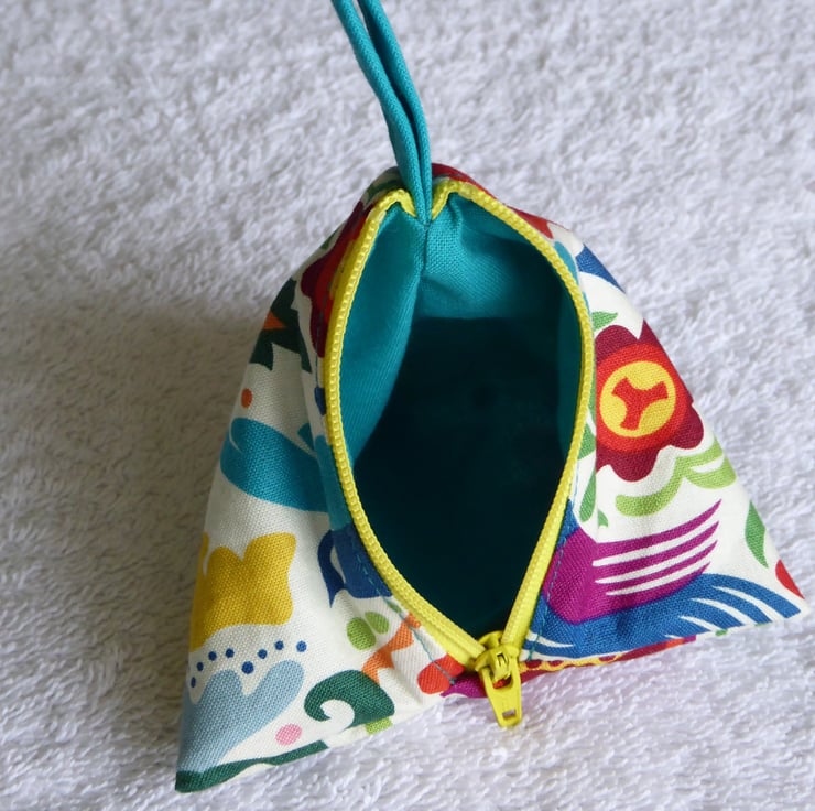 All the pyramid sides measures 4", so creates a sweet little holdall.