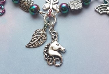 Beautiful Rainbow haematite beads, and various charms including the beautiful fabled Unicorn make up this fantastic bracelet. Unique and unusual.