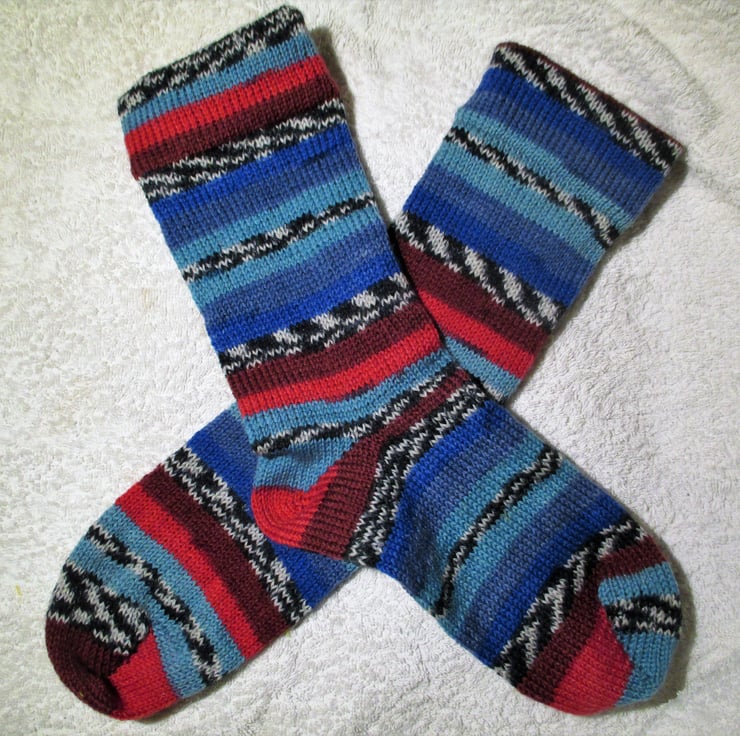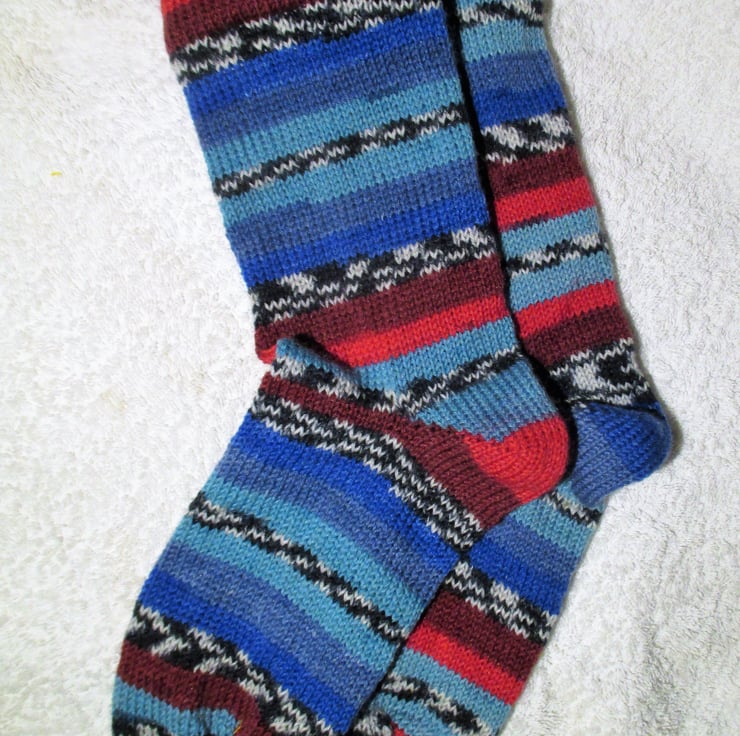 I started making socks as i found it hard to find good quality socks with no seams in the toe. The first pair was fro a vintage pattern from my Granny and when everyone in the family saw them, they all wanted a pair and my market got bigger and bigger. Now when I pop to the shop in the village, I look down at everyone's feet and invariable I will see a pair of socks that I have made. A quality sock from fun yarn !