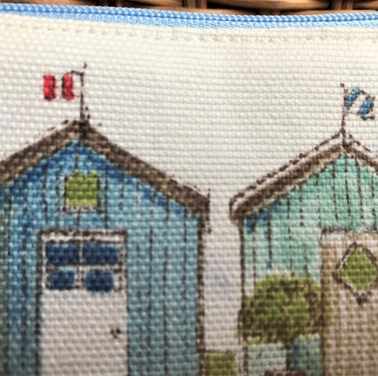 A handy cosmetic bag which can be used to store your make up and could also be used as a pencil case. The bag, with its lovely beach huts, it would make a lovely gift for anyone who loves beach huts or the coast.