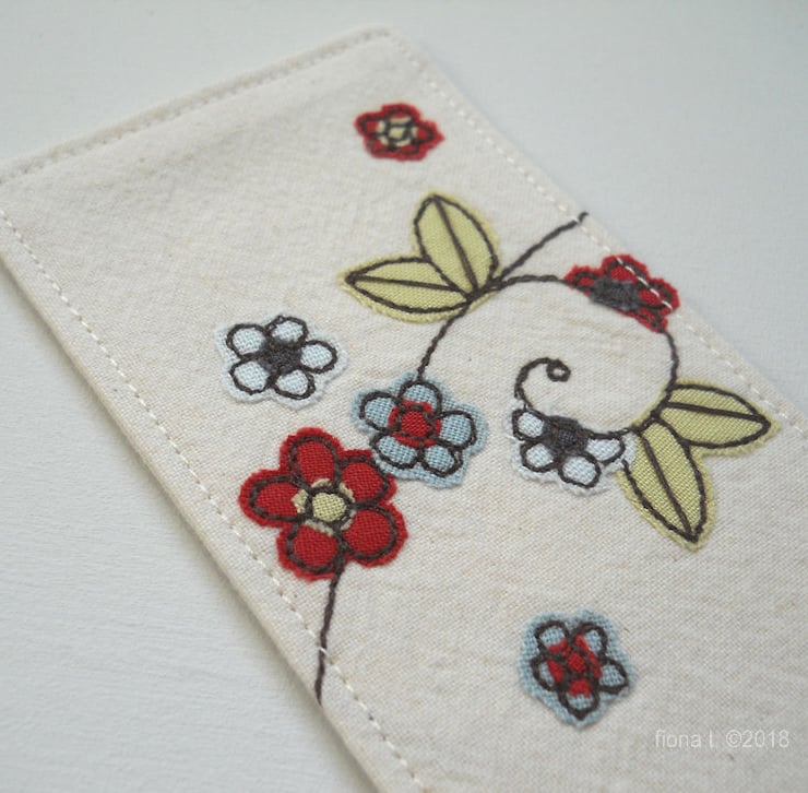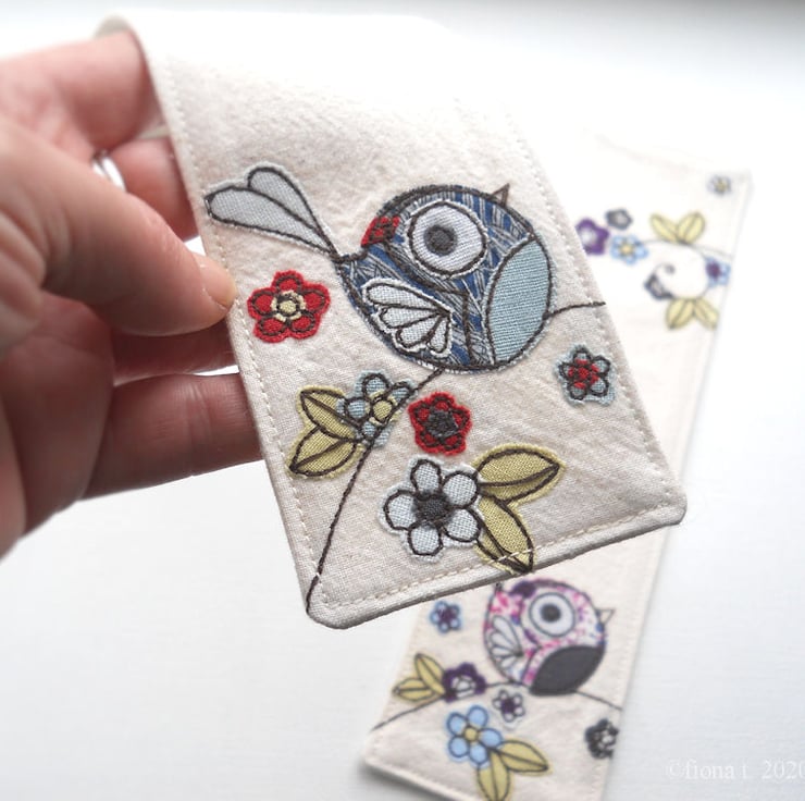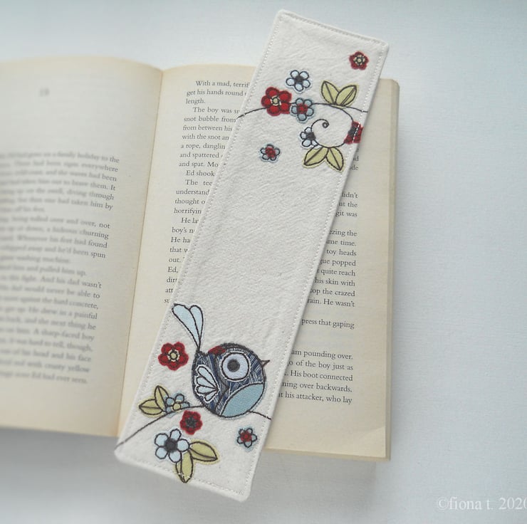 this bookmark is made entirely on a domestic sewing machine – there is no computerised wizardry here - everything is cut, stitched and handmade, with care, by me, ensuring each item is unique, well made and securely constructed.