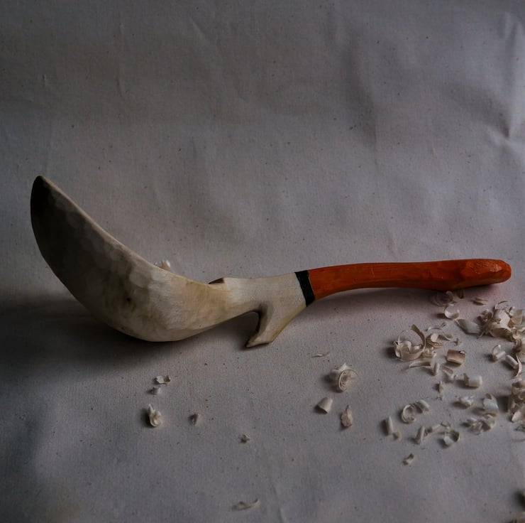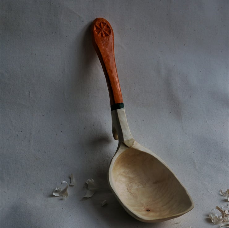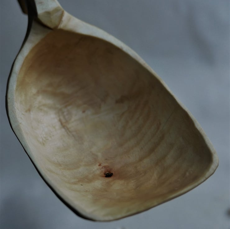 The spoon was treated with culinary grade linseed oil and allowed to dry, giving the bare wood a protective finish.